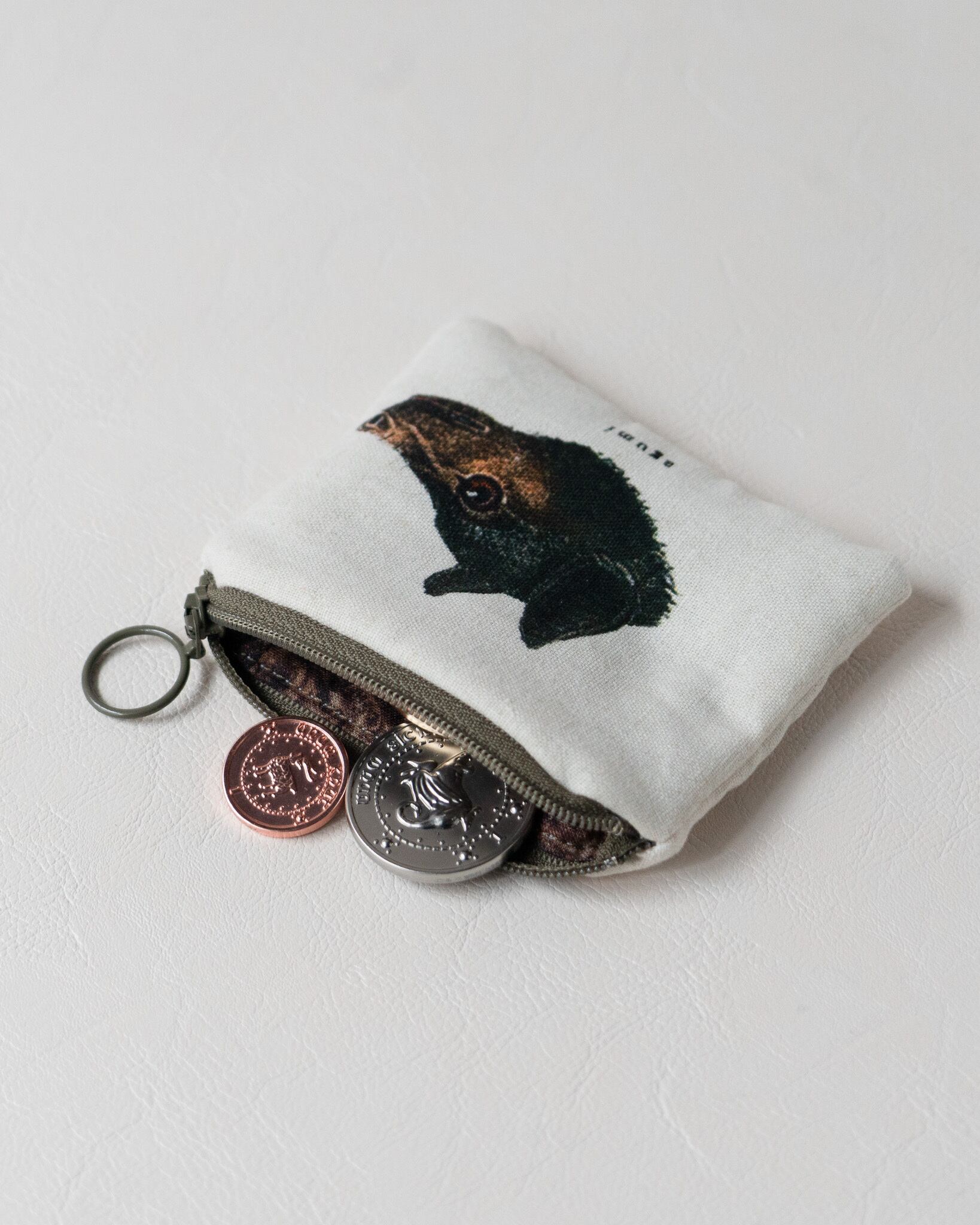 アンティークのコウモリのイラストをプリントしたミニサイズポーチ。